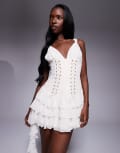 Oh Polly Toren lace up front ruffle mini dress in ivory