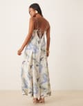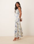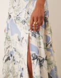 ASOS DESIGN Petite gathered bust strappy cross back midi dress in blue floral print
