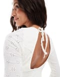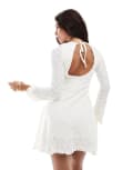 Miss Selfridge jersey mixed texture tie back mini dress in cream