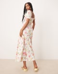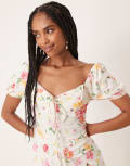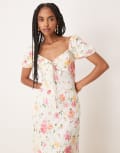 ASOS DESIGN scalloped collar puff sleeve seam detail midi tea dress in floral print