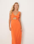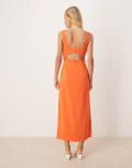 ASOS DESIGN strappy twist bust detail cut out midi dress in orange