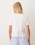Mango cotton t-shirt with lace pep hem in white