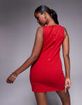 ASOS DESIGN denim stretch mini dress with seam detail in red