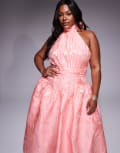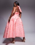 ASOS LUXE Curve jacquard maxi dress with bow in bright pink floral