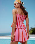 Iisla & Bird peplum top co-ord in pink and red stripe