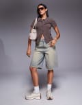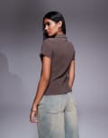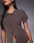 ASOS DESIGN textured button up short sleeve shirt in brown