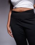 ASOS DESIGN Curve high waist sculpting cross front flare trouser in black