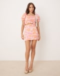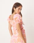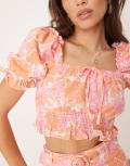 Collective The Label Puff shoulder ruched crop top in sixties floral