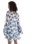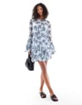 Vero Moda chiffon ruffle sleeve boho mini dress in blue floral print