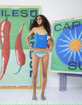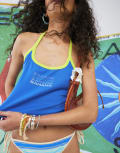 River Island ATLAS contrast trim strappy cami top in blue and yellow