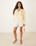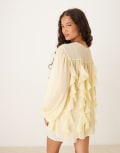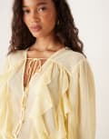 ASOS DESIGN chiffon ruffle longline blouse in buttermilk