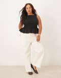 ASOS DESIGN Curve mix fabric peplum hem top in black