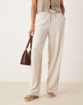 ASOS DESIGN Tall linen look pull on trousers in stone
