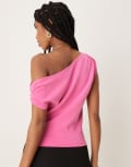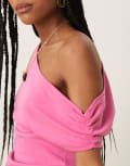 ASOS DESIGN cupro off shoulder ruched top in pink
