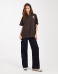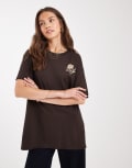 Miss Selfridge oversized floral graphic tshirt in chocolate