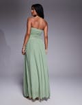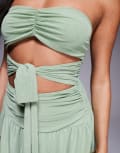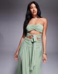 Aria Cove mesh bandeau cut out tie waist thigh split maxi dress in sage