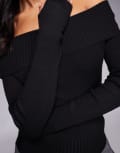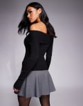 Princess Polly Morley ribbed knit bardot thumb hole top in black