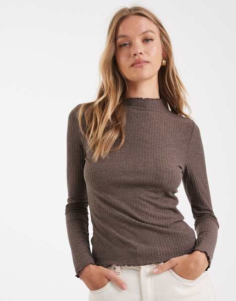 ONLY ruched detail top in brown