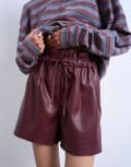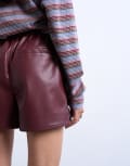 Topshop faux leather paper bag short in burgundy