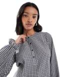 Mamalicious Maternity button front nursing friendly blouse in mini check print