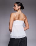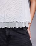 Fashionkilla mesh overlay lettuce edge hem cami peplum top in white
