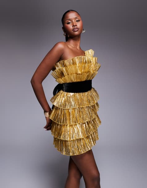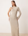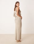 Pretty Lavish asymmetric sparkle knit midaxi dress in taupe