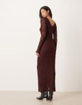 ASOS DESIGN v-neck long sleeve maxi dress in chocolate