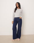 Roxy Spellbound stripes long sleeve extra textured rib top in egret spellbound