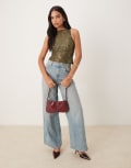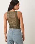 Motel Dudley vest top sequin knit in olive
