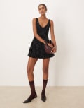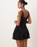 Motel rawson v neck flocked mini dress in floral black
