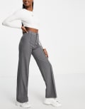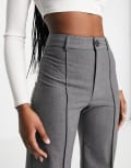 Pull&Bear high waisted tailored straight leg trousers in grey