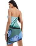 Kaiia exclusive double layered slinky bandeau mini dress in green butterfly print