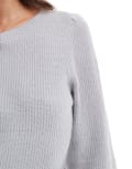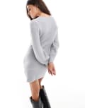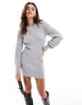 Miss Selfridge crew neck puff sleeve knitted mini dress in grey
