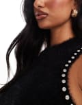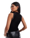 The Frolic exclusive pearl trim knitted sleeveless top in black