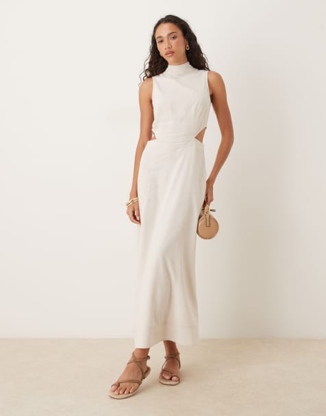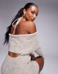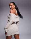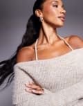 Wanderdoll Carrie knitted bardot halterneck bodycon mini dress in oatmeal