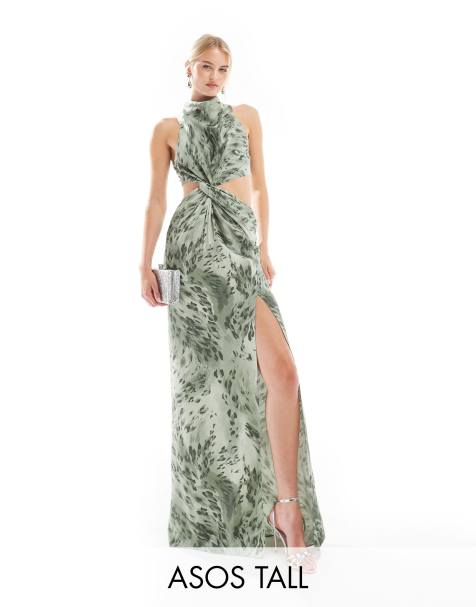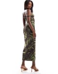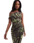 ASOS DESIGN twist one shoulder mesh midi dress in green abstract animal print