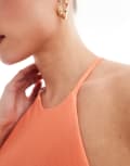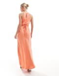 ASOS DESIGN Petite halter racer maxi dress with tie waist and cut out sides in coral