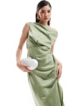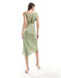ASOS DESIGN satin off shoulder drape detail midi dress in sage