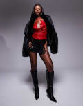 ASOS DESIGN cowl neck drape cami sequin top in red