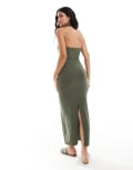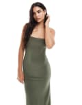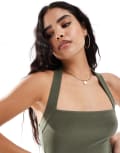 ASOS DESIGN bodycon midi dress with halter strap in khaki