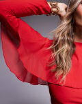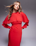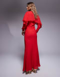 ASOS DESIGN long sleeve ruffle bias maxi dress with cape detail in red
