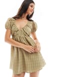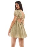 ASOS DESIGN textured smock mini dress with puff sleeve in olive