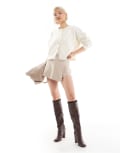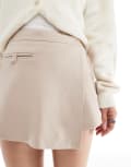 ASOS DESIGN premium ponte smart wrap skort in taupe