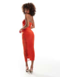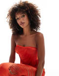 ASOS DESIGN bandage fringe bandeau midi dress in red