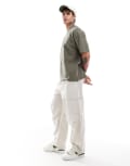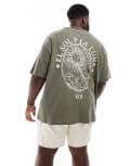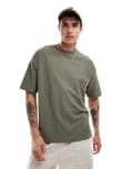 ASOS DESIGN oversized textured t-shirt in khaki with back print