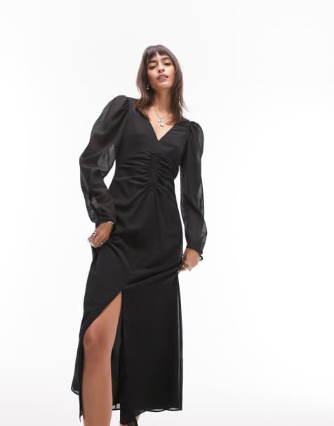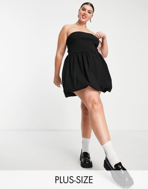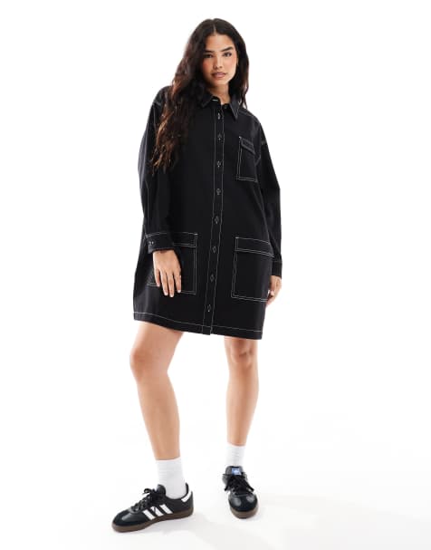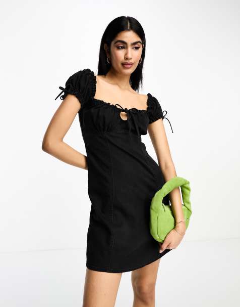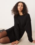 Gina Tricot sculpted crew neck knitted mini dress in black