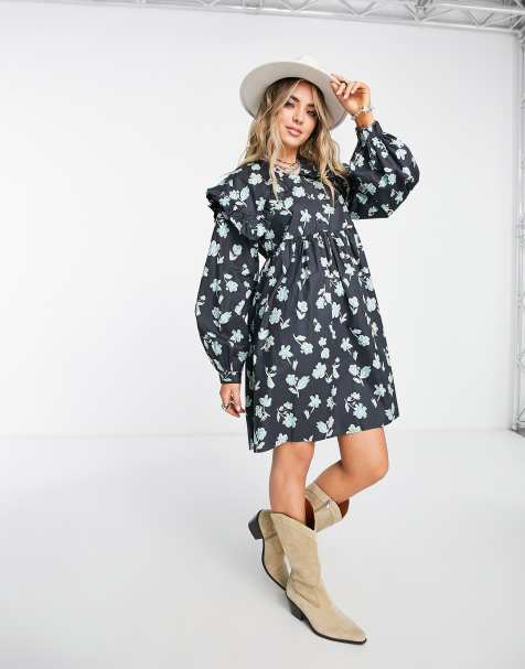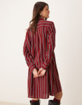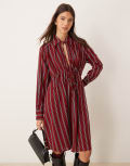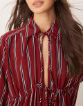 Glamorous smock chuck on dress with bow tie front in burgundy navy stripe
